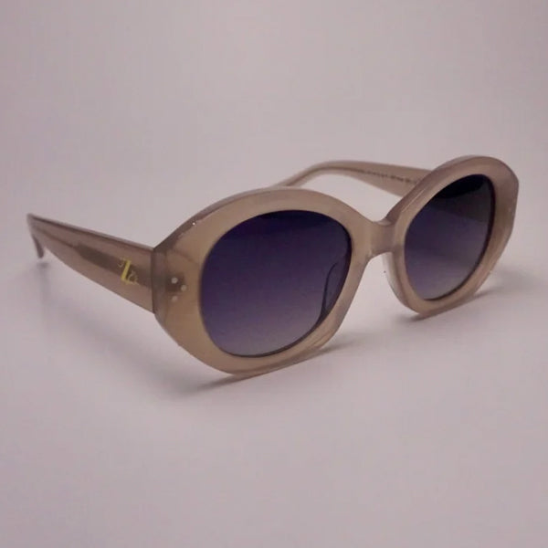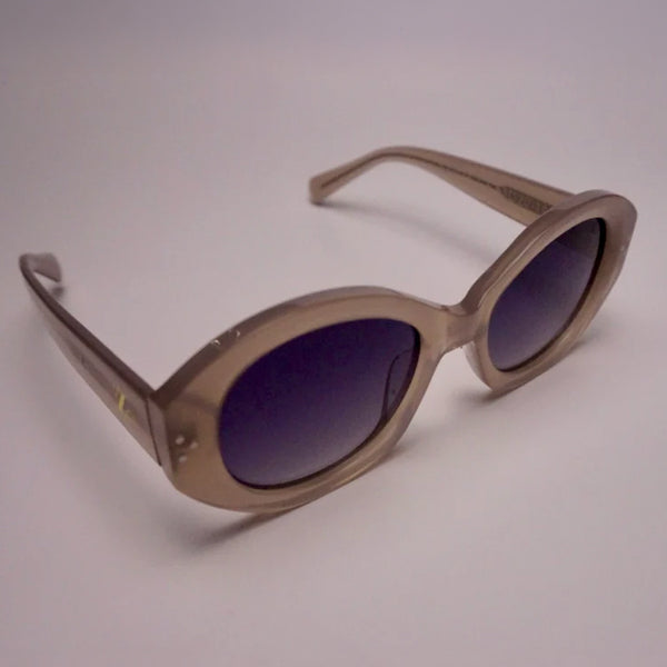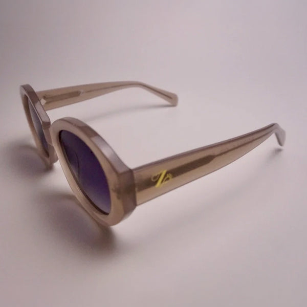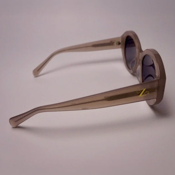 Oval shaped sunglasses, with gold detailing. With UV protection on lense. Retro-chic style sunglasses. Made in Italy
