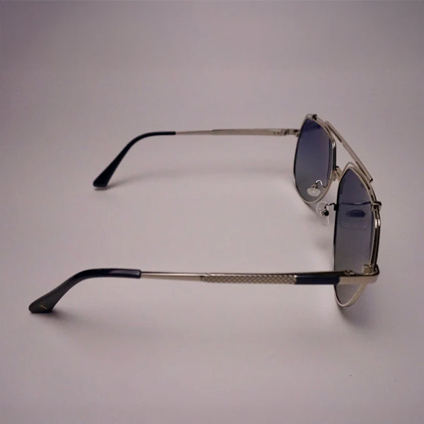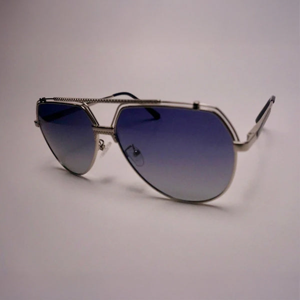 Aviator Unisex sunglasses, with silver detailing and silver and black legs. With UV protection on lense. Made in Italy