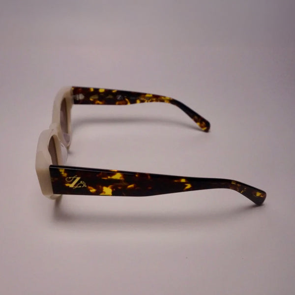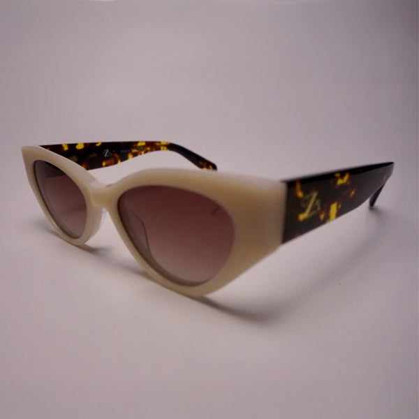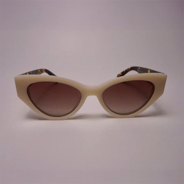 Cat-eye shaped sunglasees, with gold detailing. With UV protection on lense. Dramatic style. Made in Italy