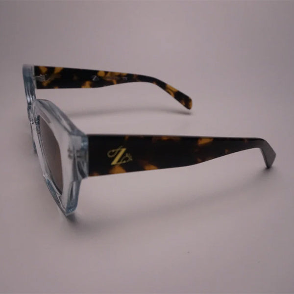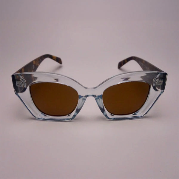 Rectangle Cat-eye shaped sunglasses, with gold detailing. WIth UV protection on lense. Retro-modern style lense with Miami vibe. Made in Italy