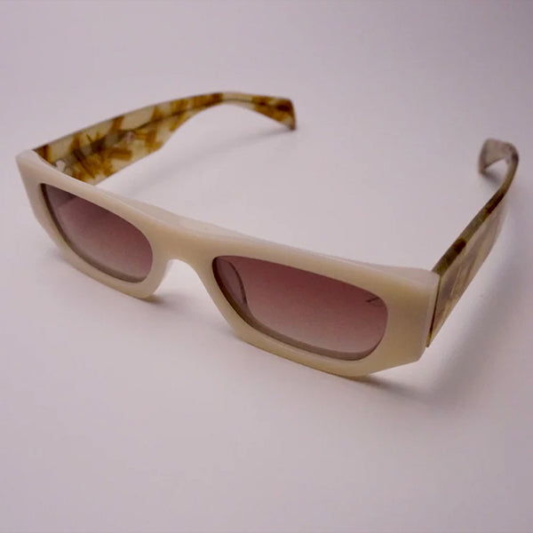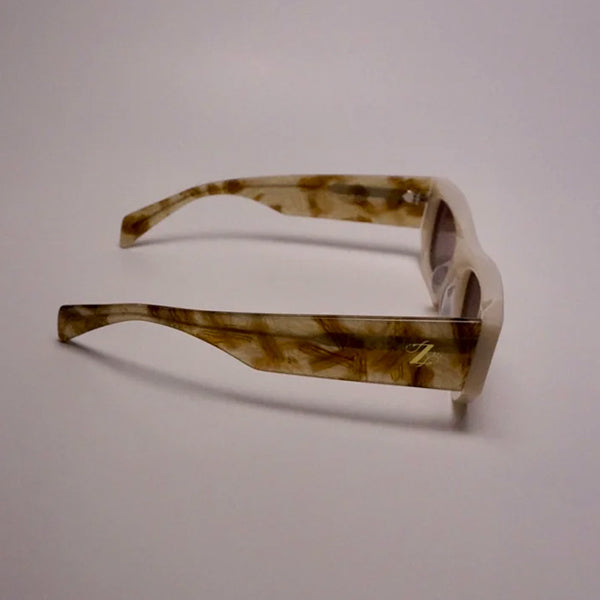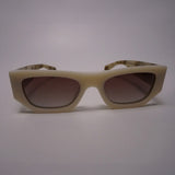 Rectangle shaped sunglasses, with gold detailing. With UV protection on lense. Made in Italy